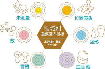 - どの領域からも出題されます。総合的にできるように過去の10年の問題を元に基本的な学力が確実に身につくようにします。