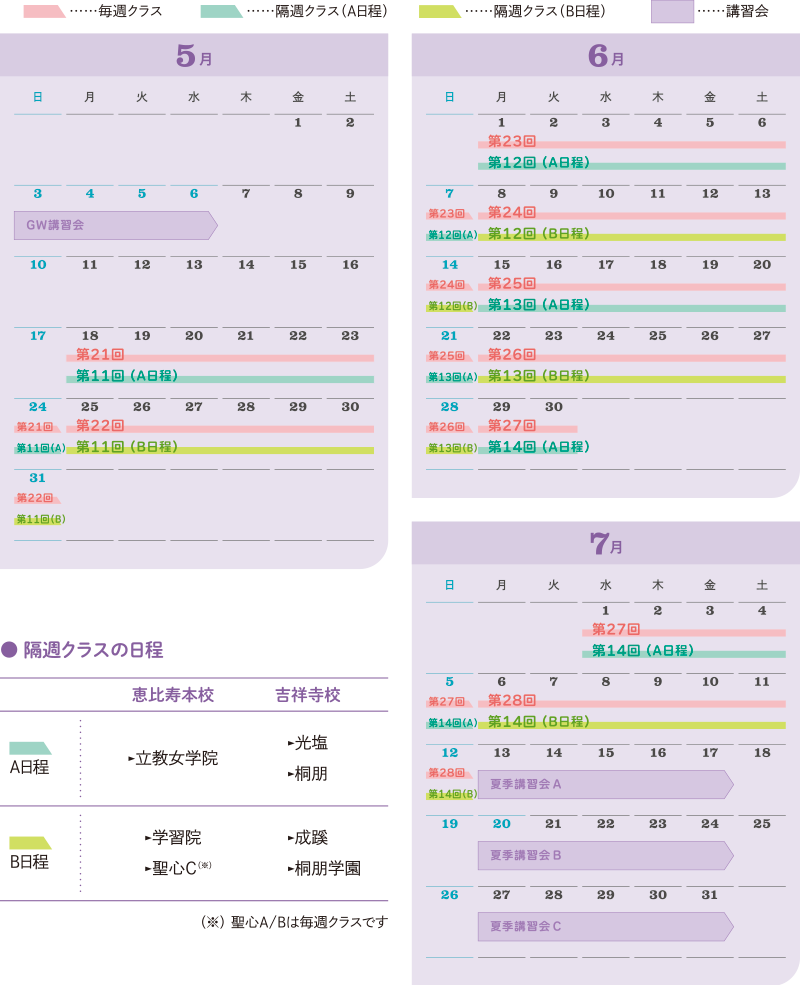年長児対象志望校別講座「募集要項」 志望校別講座 目次 学力対策コース 行動観察・手先の巧緻性コース 募集要項 受付・お支払い方法 募集要項 対象 ばらクラス生一般 年長児(2020年4月2日~2021年4月1日生まれ)※2026年4月に年長になるお子さま 期間 【後期-1】2026年3月2日~5月17日 【後期-2】2026年5月18日~7月12日 授業回数 毎週クラス:8回/隔週クラス:4回 ※日程は授業カレンダーにてご確認ください 授業カレンダー 【後期-1】授業カレンダー 【後期-2】授業カレンダー