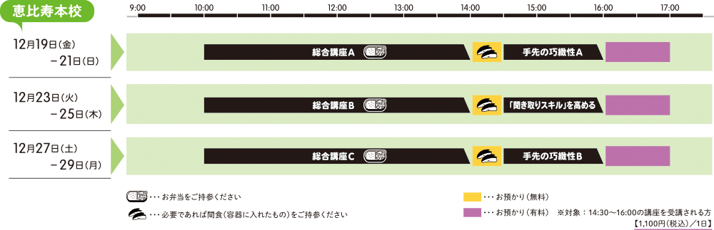 12月16日(火)~29日(月)恵比寿本校・吉祥寺校にて開講