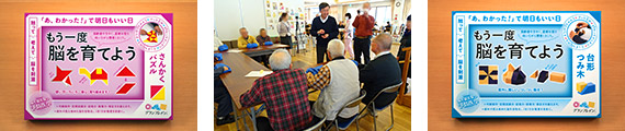 人間の認知能力の獲得過程は、子どもも大人も変わりません。ですから幼児向けに開発したオリジナル教材が、これまでも知的な障害を持つ子どものための教材として活用されたり、日本語を学ぶ外国人の言語教材として活用されてきました。今回の高齢者向けの認知症対策の教材もその一つです。教材づくりを通して社会に貢献できれば、わたしたちにとってこの上もない喜びです。