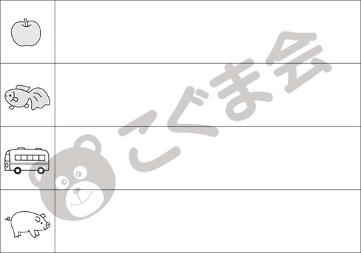- リンゴが5個ありました。太郎君がいくつか食べたのでリンゴは3個になりました。太郎君が食べたリンゴはいくつですか。その数だけリンゴのお部屋に○をかいてください。